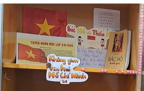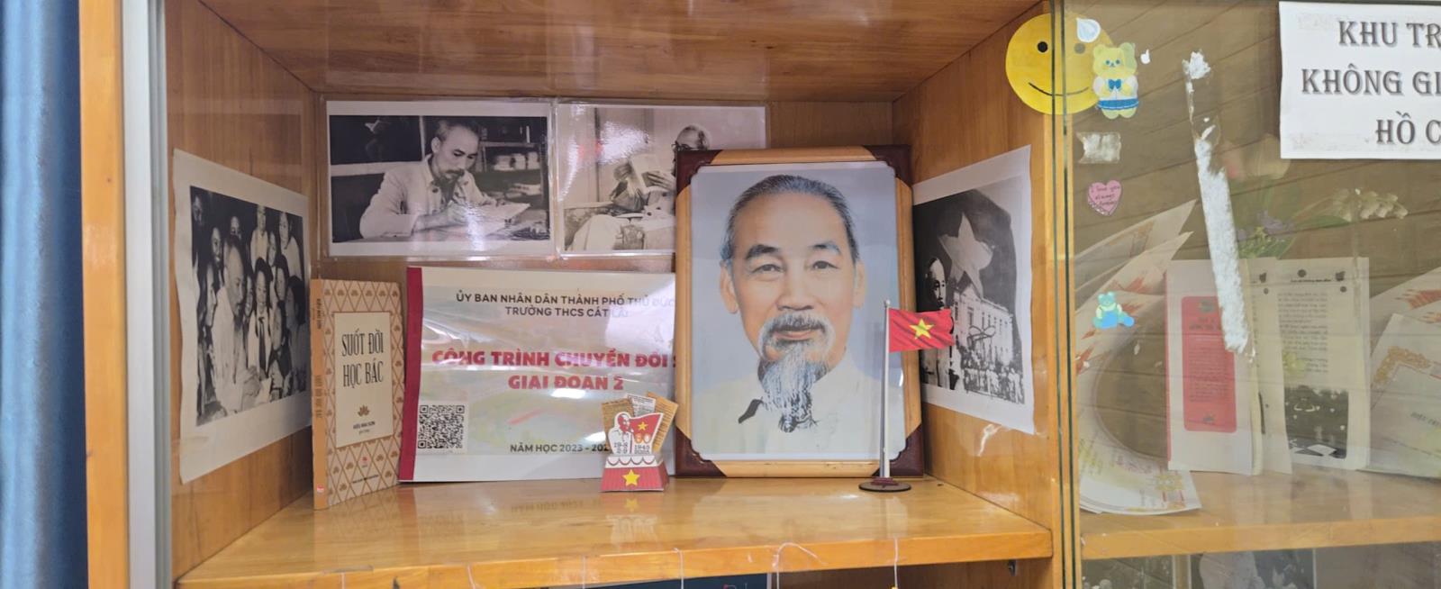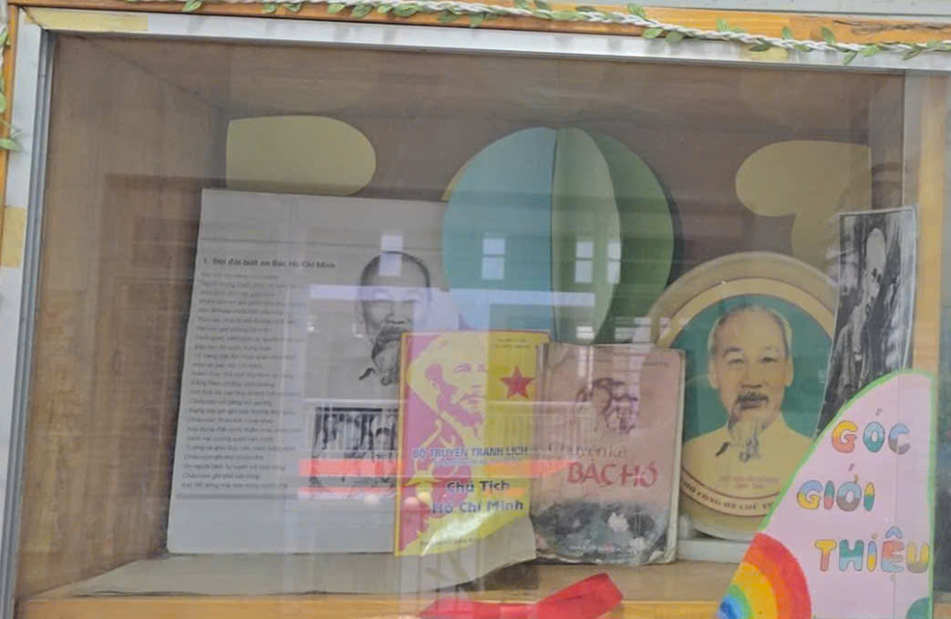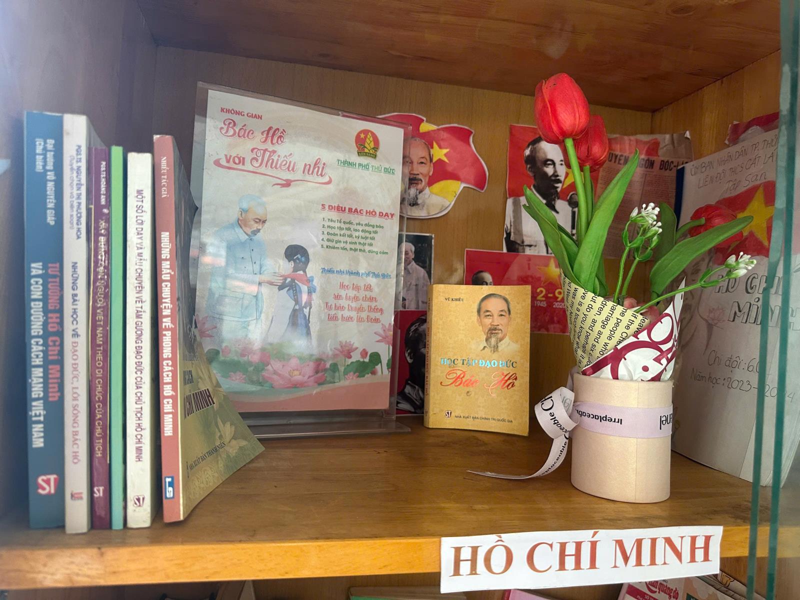 GÓC KHÔNG GIAN VĂN HÓA HỒ CHÍ MINH TRONG TỦ SÁCH LỚP HỌC TẠI TRƯỜNG THCS CÁT LÁI PHƯỜNG CÁT LÁI TPHCM.