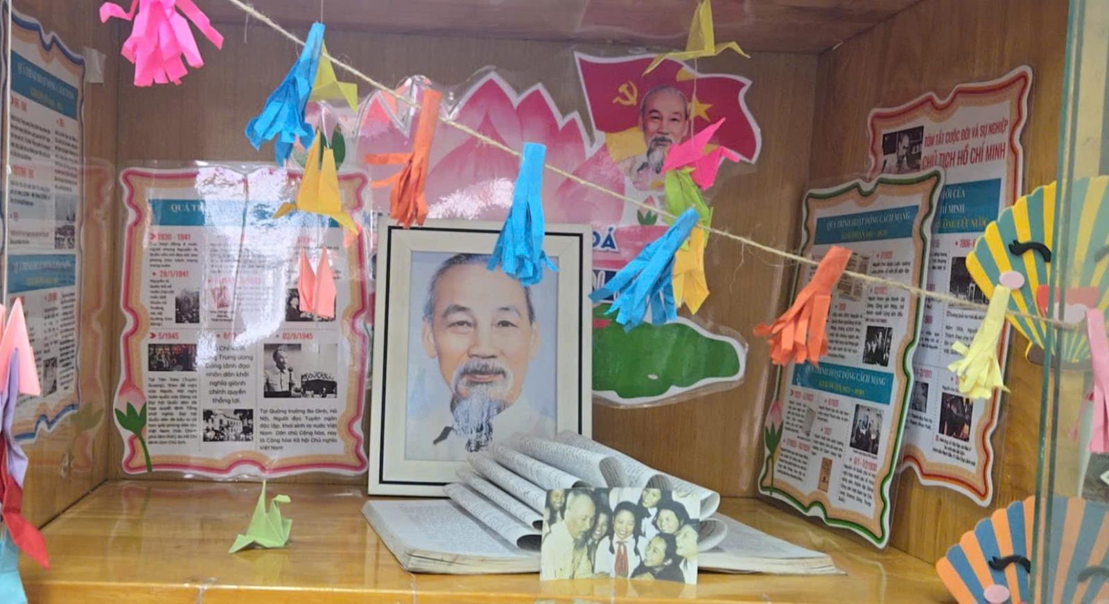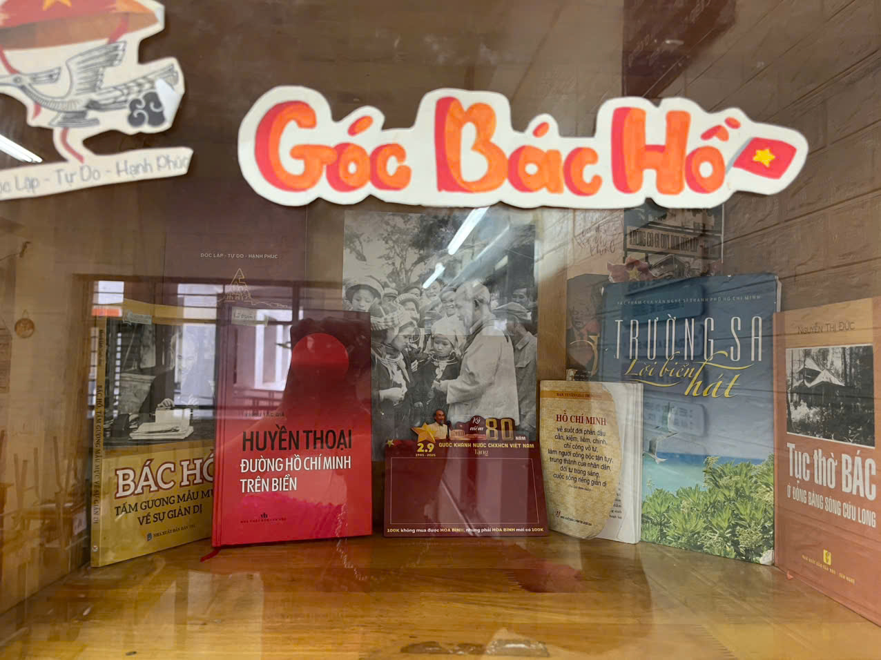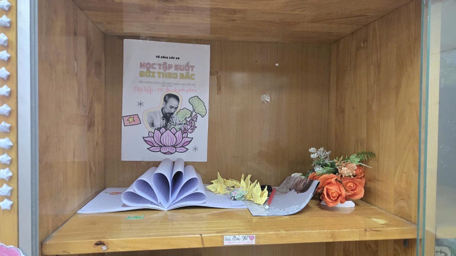 GÓC KHÔNG GIAN VĂN HÓA HỒ CHÍ MINH TRONG TỦ SÁCH LỚP HỌC TẠI TRƯỜNG THCS CÁT LÁI PHƯỜNG CÁT LÁI TPHCM.