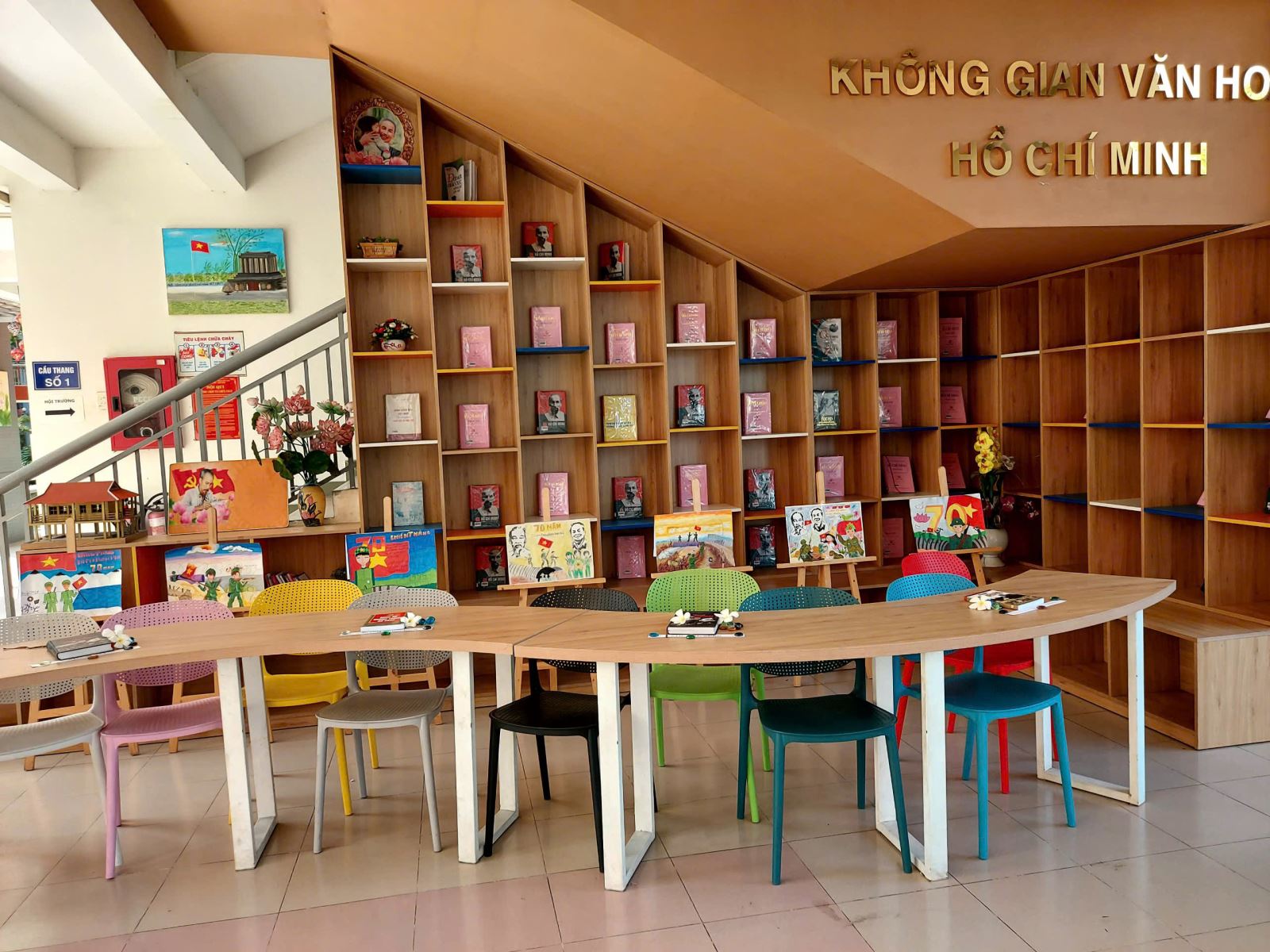 GÓC KHÔNG GIAN VĂN HÓA HỒ CHÍ MINH TRONG TỦ SÁCH LỚP HỌC TẠI TRƯỜNG THCS CÁT LÁI PHƯỜNG CÁT LÁI TPHCM.